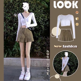 Set Áo Thun Dài Tay Ôm Dáng + Chân Váy Ngắn Bằng Da Thời Trang Dành Cho Nữ