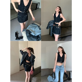 Set Áo Cổ Chữ V Không Tay + Chân Váy Lưng Cao Thời Trang Nữ
