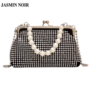Túi Đeo JASMIN NOIR Chéo Nắp Gập Đính Ngọc Trai Và Kim Cương Giả Dễ Thương Cho Bạn Gái