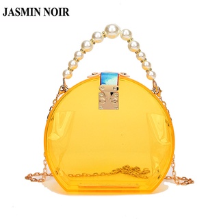 Túi Đeo JASMIN NOIR Chéo Bằng Nhựa PVC Trong Suốt Hình Tròn Phối Dây Đeo Sợi Xích Thời Trang