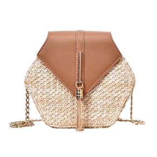 Túi Đeo Chéo JASMIN NOIR Nhỏ Bằng Da PU Và Rơm Hình Lục Giác Thời Trang Cho Nữ