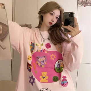 Jiashucheng Áo Thun Cotton Nguyên Chất Tay Dài Dáng Rộng In Họa Tiết Hoạt Hình Thời Trang Mùa Thu 2023