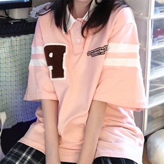 Jiashucheng Áo Thun Nữ Ngắn Tay Cổ Bẻ Form Rộng Phong Cách Hàn Quốc Mới