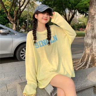Jiashucheng Áo Thun Tay Dài Chống Nắng Mỏng Dáng Rộng In Chữ Phong Cách Hàn Quốc Thời Trang Mùa Hè Dành Cho Bạn Nữ