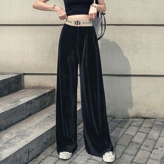 Jiashucheng Quần Nhung Lưng Cao Ống Rộng Xẻ Tà Cá Tính Dành Cho Nữ