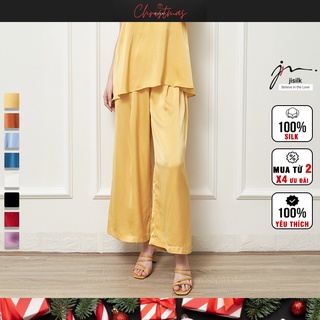 Quần basicci chất liệu satin thiết kế dáng suông ống rộng mặc nhà đi chơi Jisilk L.QDA-01