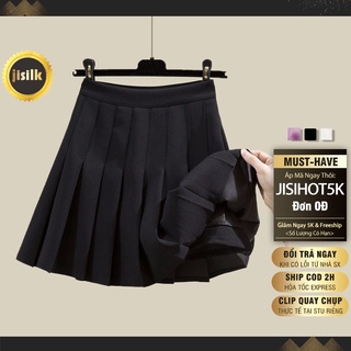 Chân váy xếp ly jisilk ngắn tennis chữ a cạp cao trắng đen nâu ghi xám có lót bảo hộ TENNIS T.CVN-01