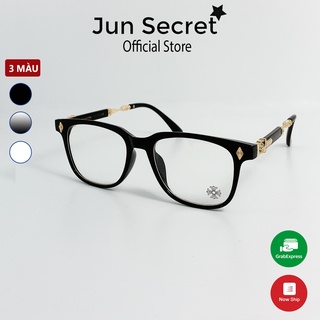 Gọng kính cận nam nữ Jun Secret form vuông, tròng kính 0 độ chống bụi, chống tia UV an toàn cao cấp JS52013