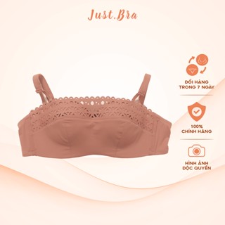 Áo ngực quây hai dây Just Bra chất cotton thun phối ren hoa, ôm ngực AB448