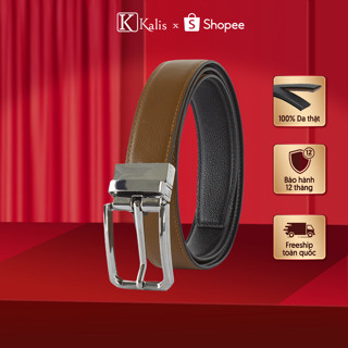 Thắt lưng xoay da bò thật cao cấp hàng hiệu KALIS BCSM1201 Dây nịt nịch thắt lưng da thật quần tây âu nam 2 mặt xoay 360