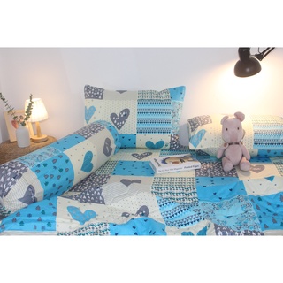 Bộ drap gối KHA LY - cotton thiên nhiên - Ô Vuông Tim Xanh - VN243