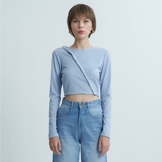 Áo nữ tay dài croptop KHÂU BY CQ chất cotton màu xanh Jaimin