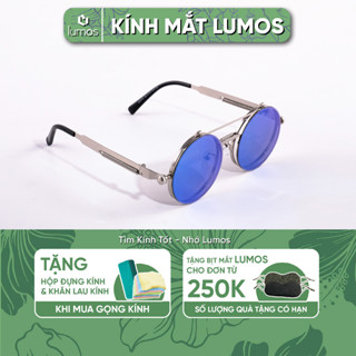 Gọng kính râm cận đa năng 2IN1 LUMOS hot trend 2023 dáng mắt tròn kim loại tròng kính chống tia UV 3057
