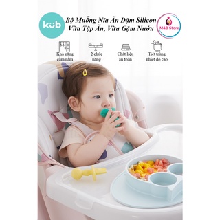 Bộ muỗng nĩa ăn dặm KUB, thìa dĩa silicon cao cấp cho bé có thể uốn cong 360 độ