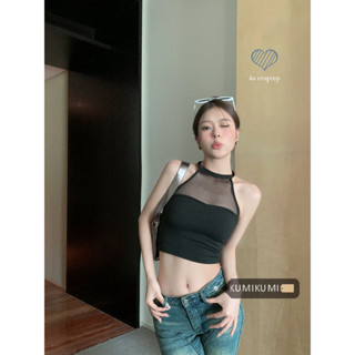 Áo Croptop Hai Dây Phối Lưới Màu Trơn Thời Trang Mùa Hè Mới 20023 Cho Nữ