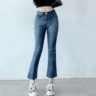 Quần jean ống loe - Quần bò nữ denim cạp cao có gấu dáng ôm thời trang - La’coba
