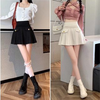 Chân váy tennis Lachi công sở dáng ngắn xếp ly phối 4 khuy lưng cao nịt bụng có bigsize CV25