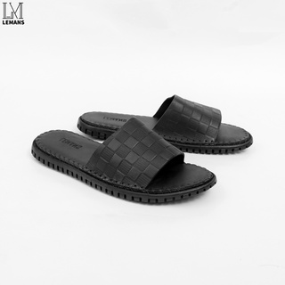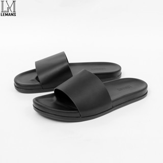 Dép Da Bò Quai Ngang Đen Xanh Navy Nâu Cao Cấp chống nước chính hãng LeMans Slides Sandal