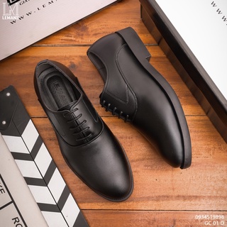 Giày công sở Modern Derby Black LEMANS GC08 da bò, đế tăng cao 4cm, giày tây tăng chiều cao ,bảo hành 12-24 tháng