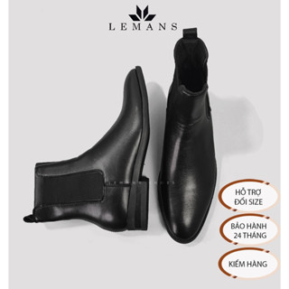 Giày da bò Chelsea Boots Black LEMANS CB66, đế Lemans cao 4cm, boot nam chelsea boot nam, bảo hành 12-24 tháng