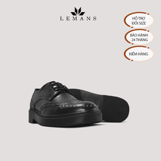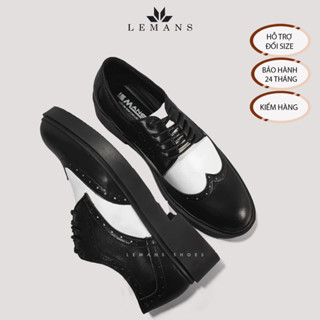 [TẶNG XI TRẮNG] Giày Derby Wingtip Black White LEMANS, Da bò đế Lemans tăng cao 4cm Bảo hành chính hãng 12-24 tháng