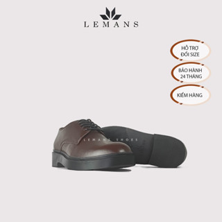 Giày tây Modern Derby Brown - LEMANS, da bò nguyên tấm, đế tăng chiều cao 4cm, bảo hành chính hãng 24 tháng