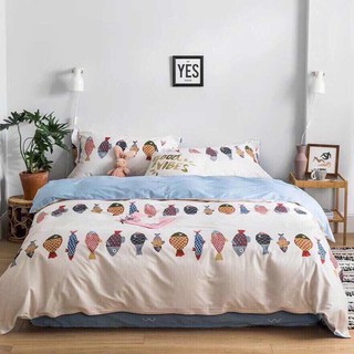 Bộ chăn ga gối cotton poly Lidaco decor phòng ngủ vintage - Cá Trắng Dọc