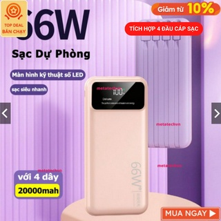 Sạc Dự Phòng 20000mAh Dung Lượng Lớn 66W Sạc nhanh Có Màn Hình LED Hiển Thị Kèm 4 Đầu Cáp Sạc