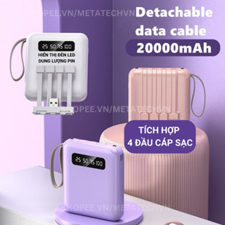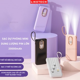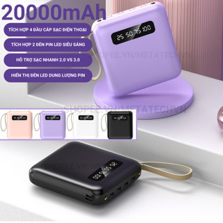Cục sạc dự phòng mini dung lượng lớn 20000 mAh tích hợp cáp sạc nhiều thiết bị cùng lúc đèn pin màn hình led hiển thị