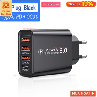 Cốc sạc nhanh QC 3.0 có 3 cổng USB+ 1 cổng PD phích cắm EU Củ sạc hỗ trợ sạc nhanh công suất 3A
