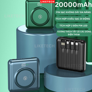 Pin Sạc Dự Phòng LIKETECHP001 Dung Lượng Pin 20000mAh Tích Hợp 4 Cáp Sạc Không Dây, Đèn Pin