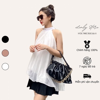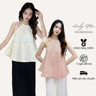 Áo kiểu nữ cổ yếm Linly Store phối dây bản to chất tơ A-YS