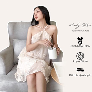 Váy hai dây nữ cổ yếm Linly Store dáng xòe chất von họa tiết V-VHD3