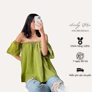 Áo kiểu nữ trễ vai tay bồng chất đũi Linly Store A-TV