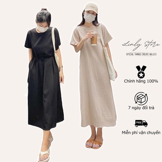 Váy nữ dáng suông dài vintage Linly Store thắt eo form rộng V-TS
