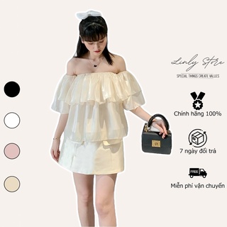 Áo trễ vai 2 dây dáng xòe Linly Store thiết kế bẹt vai bánh bèo A-TVO