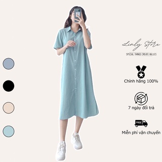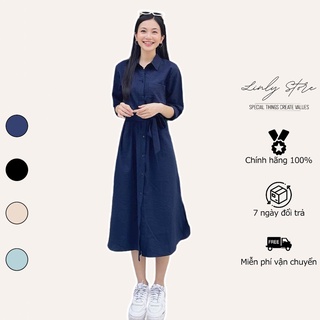Váy sơ mi nữ dáng dài Linly Store thắt eo form suông vintage V-SMN