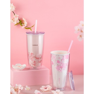 Ly Nhựa 2 lớp Lock&Lock Cherry Blossom Kèm Ống Hút HAP509WHT / HAP509PIK 750ml
