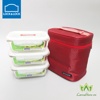 Hộp Cơm Lock&lock Thủy Tinh LLG422S4DR (380ml x 3) Túi đỏ