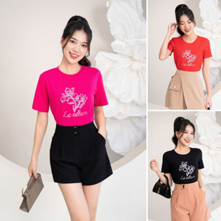 Áo thun nữ form vừa in hình chất liệu Cotton Compact LOZA - PT302224