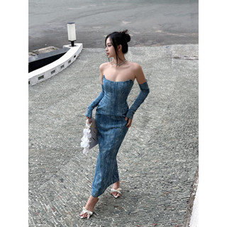 Đầm Maxi Body Cúp Ngực Denim Kèm Bao Tay Azura Dress LSEOUL V23061545 Tôn Dáng Sang Trọng Đi Tiệc