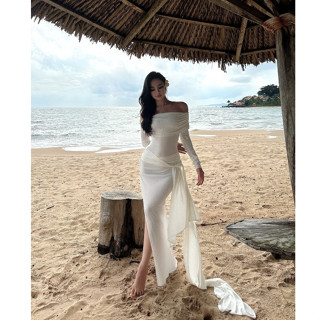 Đầm Body Maxi Bẹt Vai Tay Dài Dây Choàng Eo Iris LSEOUL V23071548 Sang Trọng Tôn Dáng