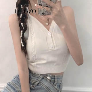 Áo croptop nữ áo kiểu dây rút chéo không tay dệt kim LUHAZO thời trang quyến rũ mẫu mới nhất 2022 S4T1-2
