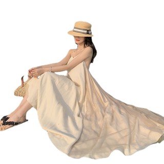 Đầm dáng dài đi biển babydoll maxi cho nữ LUHAZO váy dự tiệc hai dây cổ yếm hở vai lưng sexy phong cách Hàn Quốc V-26