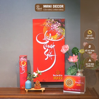 Lịch Trong Suốt 2023, treo tường chữ thư pháp TẶNG MÓC KHÓA CHUÔNG in lời khuyên hữu ích, lịch phật giáo - Mani Decor