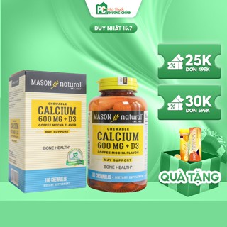 Viên nhai bổ sung canxi và vitamin D3 Mason Natural Calcium 600MG + D3 giúp tăng chiều cao hỗ trợ xương răng chắc khỏe