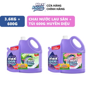 Chai Nước Lau Sàn MaxKleen 3.6kg + Túi Nước Giặt xả 600g Hoa Huyền Diệu