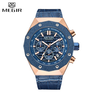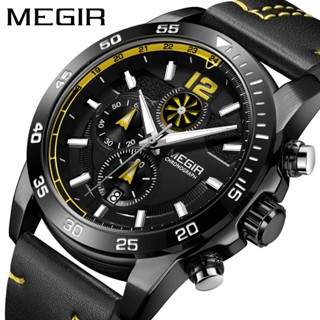 Đồng Hồ Đeo Tay MEGIR Bằng Da Thật Chống Nước Màu Dạ Quang Sang Trọng Cho Nam