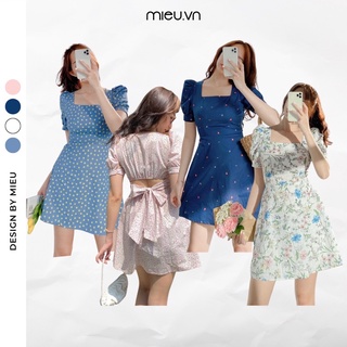 Váy nữ hoa nhí MIEU dáng chữ A cổ vuông tay phồng cột sau - HM05