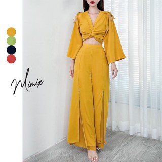 Set bộ trơn đắp chéo áo khoét vai kèm quần ống xẻ tà MIMIX CV8240